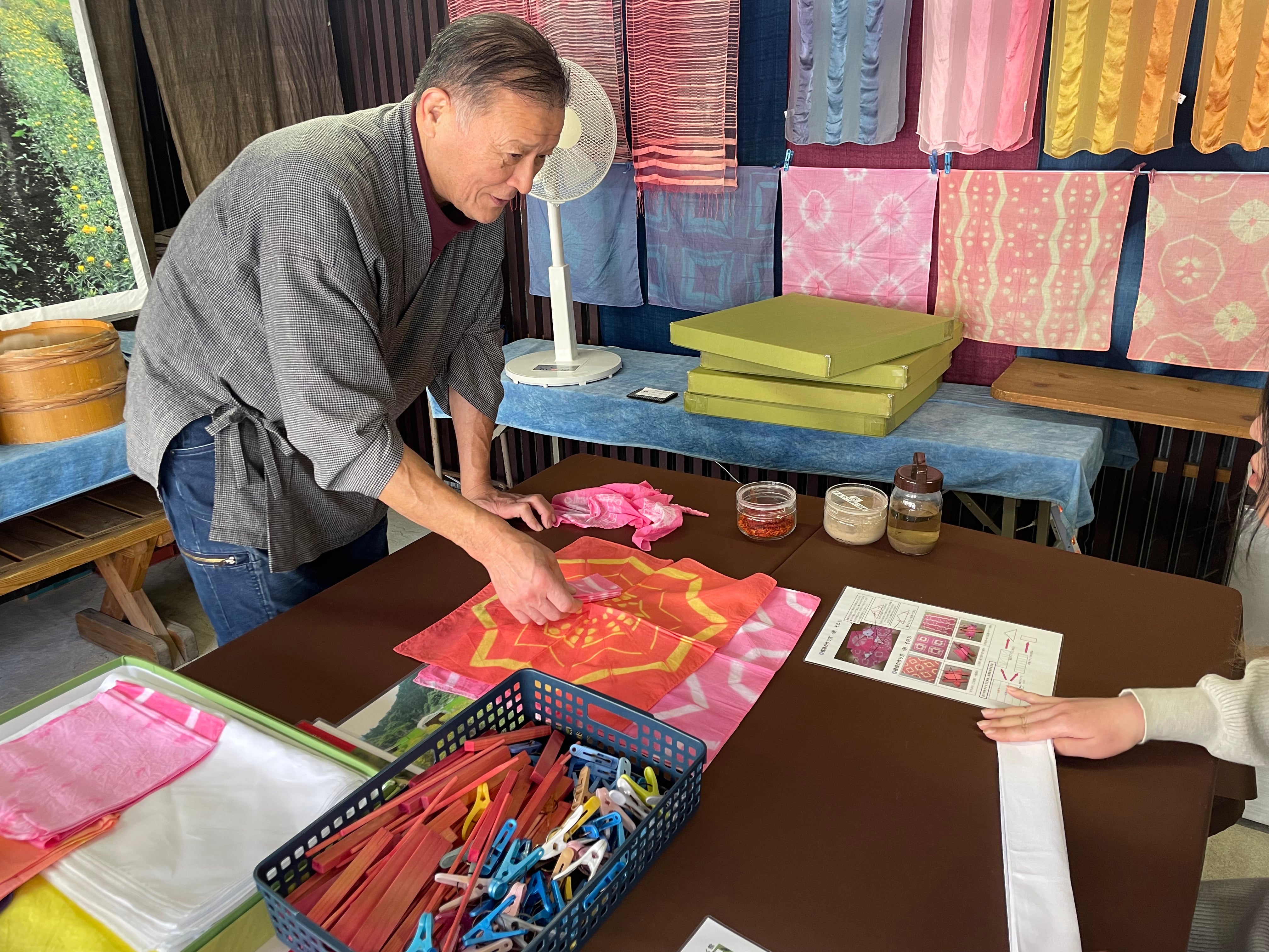 織元の主人やスタッフに教えていただきながら、世界に一点だけのお土産も完成。